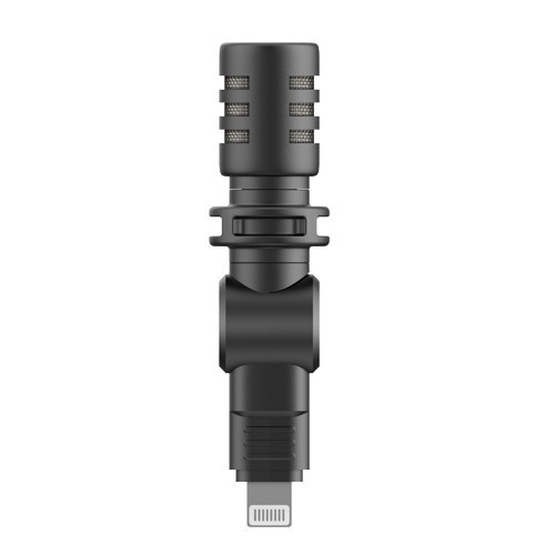 The Boya BY-M100D is a tiny condenser mic. This microphone has With its omnidirectional polar pattern capsule, it records every last sound in a 360-degree range between 50 Hz and 18 kHz frequency response and sends it straight to your iOS devices through its Lightning connector, which is Apple MFI certified. This microphone has an Apple MFI certified Lightning connector, a microphone head that can be rotated up to 180 degrees, and a 65dB S:(F=1KHz, S.P.L=1Pa) N:(A-Weighted curve). The microphone has a foam windscreen and an omnidirectional polar pattern. Put on the included foam windscreen to cut down on noise from fans or breezes.