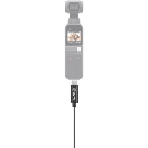 The DJI Osmo Pocket Gimbal Camera is compatible with the Boya BY-M3-OP Lavalier microphone. The talent can work hands-free thanks to the clip-on lavalier design, and the microphone's omnidirectional pickup pattern provides a forgiving capture quality that keeps the audio steady even when the performer rotates away from the capsule. The microphone can suppress unwanted low ends even at close range because of its low proximity effect and low handling noise. The condenser mic element's wide frequency response of 50 Hz to 20 kHz allows it to record audio to the camera at resolutions up to 24-bit/96 kHz and accommodate a wide variety of speaking and presentation styles. Since the Osmo Pocket powers the BY-M3-OP, a battery is not required. A lapel clip, a foam windshield, and a carrying pouch are also included. The digital lavalier microphone BOYA BY-M3-OP is clip-on.